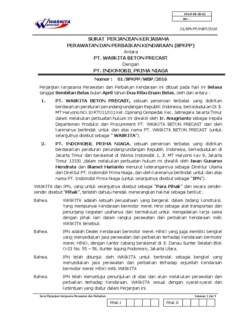 Surat Perjanjian Kerjasama Perawatan Dan Perbaikan Kendaraan Pdf